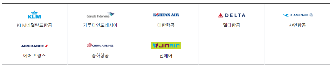 인천공항 제2여객터미널 항공사로는 총 8개의 항공사들이 취항하고 있습니다. 대표적인 항공사인 대한항공 외 KLM네덜란드 항공, 가루다인도네시아, 델타항공, 샤먼항공, 에어 프랑스, 중화항공, 진에어가 있습니다.