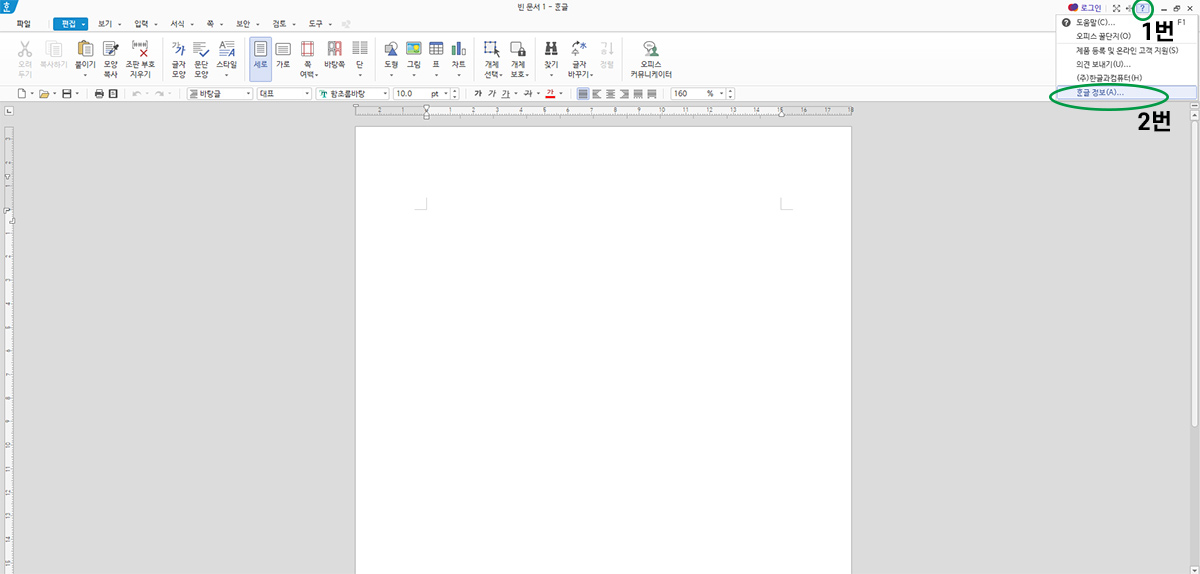 한글 오피스 프로그램을 열면 쉽게 제품번호를 확인할 수 있습니다.